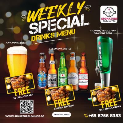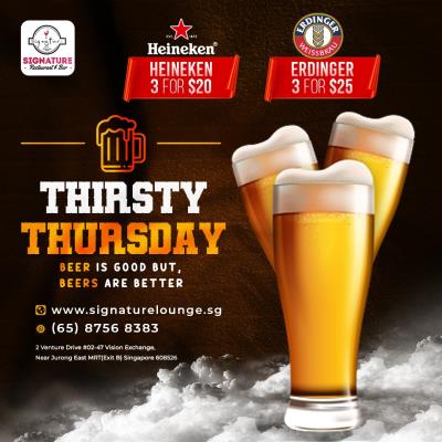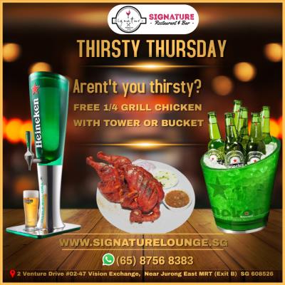 It's Thirsty Thursday, Signature Restaurant's offers 1/4 Grill Chicken FREE with...