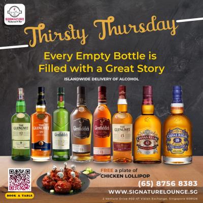 Signature's July Deals on Whisky & Spirits, FREE a plate of Chicken Lollipop wi...